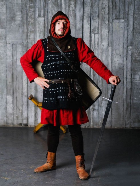 Depending on the wealth and social class, knights were wearing brigandines, made of various materials and fabrics. Common infantrymen and poor warriors could afford brigand armor covered with wool. Rich and noble knights were wearing velvet, suede or leather brigandines with beautiful festoons, attires, figured bronze rivets and cast buckles.