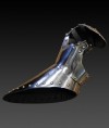 Handcrafted gauntlets are typical for Milanese armour of the 1450-1485 years. They have long cuffs for better arm protection. Segmented plate gauntlets have plates, joined with rivets. So, knight’s fist may move free and be safely protected at the same time during the fencing or combat.