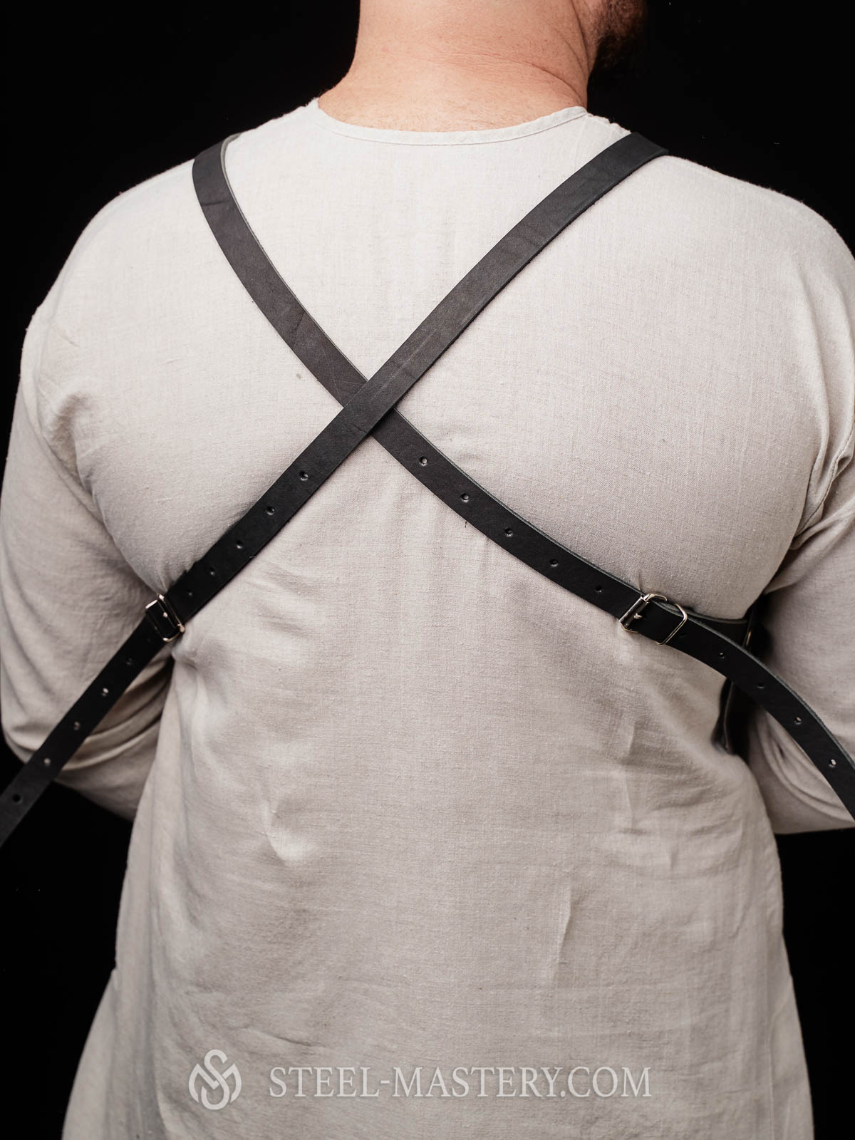 From the backside, there are leather belts for wearing of chestplate. To complete your knight armor set, we recommend to wear this torso plate together with plate spaulders.