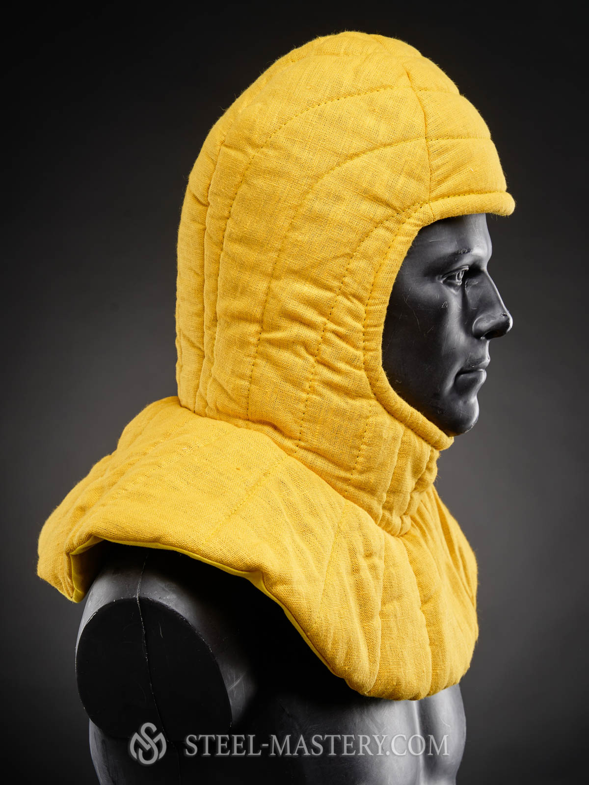 After a good bohurt, any fighter will say you that he is grateful at the most not to piece of iron in his hands, not to his armor and gambeson, not to greaves and bracers and even not to helmet (though, he is grateful to helmet very much). However, after a good bohurts, if a fighter is able to think straight, so he is mostly thankful to his soft, thick and good coif. Even though it did not glint in the sun as a helmet did, but it saved fighter’s head of cerebral concussion. If a fighting man was into luck to wear such big, soft and super-protective padded arming cap, made of the best natural linen, so he do not worry about head protection at all. As tailor of Steel Mastery have already worried about it by sewing, wadding and quilting a real medieval coif got him.