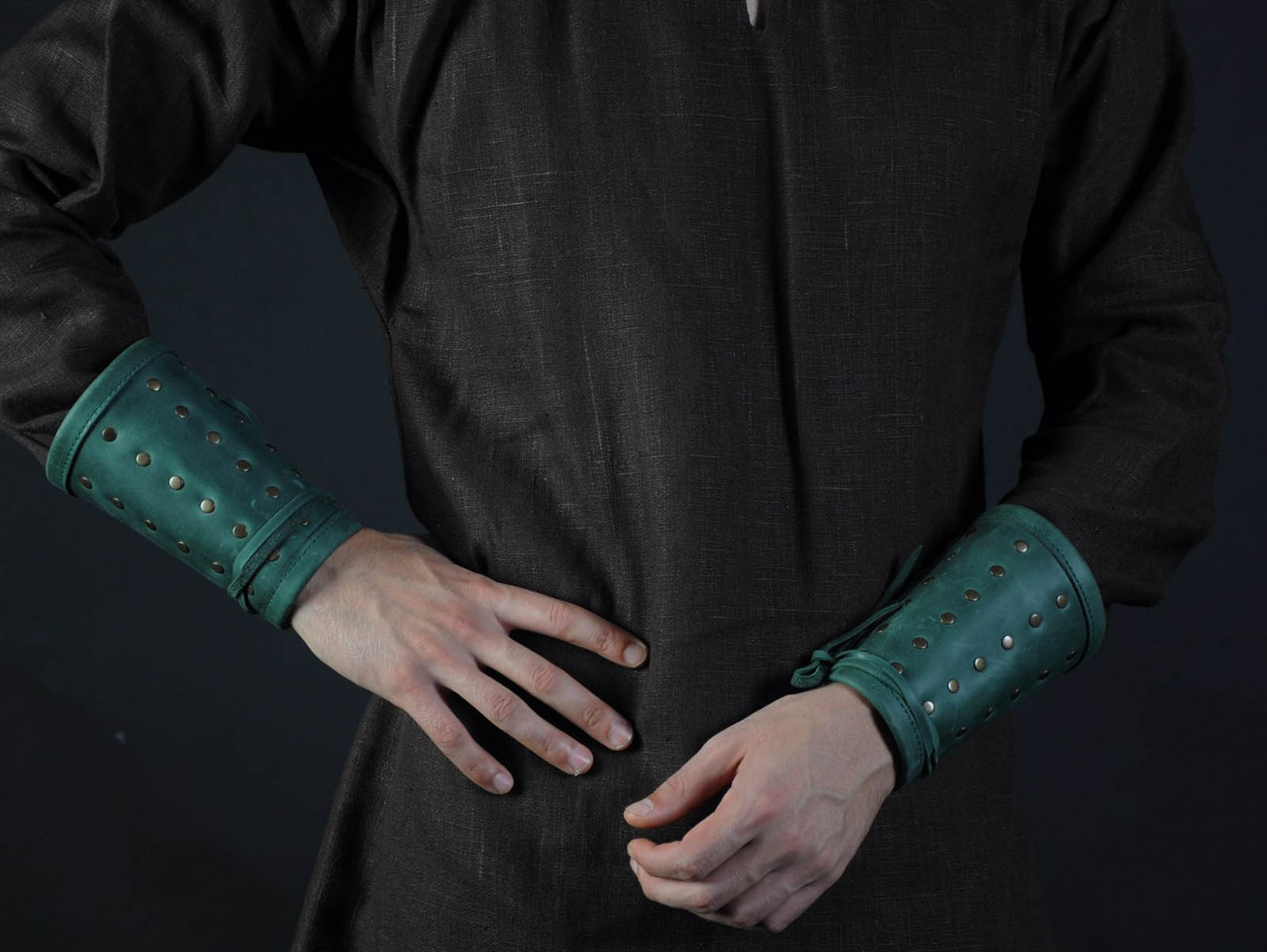 Designed especially for archers they will also serve you as medieval leather armor at medieval festivals, larp leather armor at LARP events, leather scale armor at SCA, stage performances and other RPG activities.