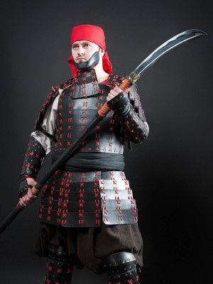 Wide knight belt will be a perfect accessory for such gambison. You may choose a one in the category “Leather belts”.