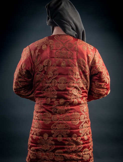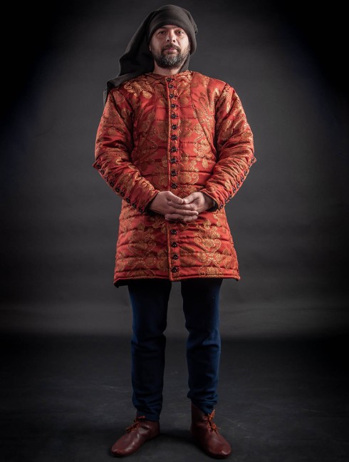 There is a gorgeous gambeson of singular beauty, which we even grudge to sell, but we pushed ourselves to do that. Truly royal thing, not even because of splendid brocade as outer fabric of this good-looker. A far predecessor – pourpoint of Charles de Blois, dated by the middle of the XIV century and familiar to everyone, makes this medieval gambeson a royal one.