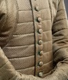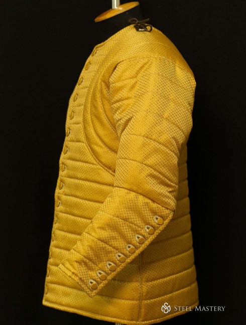 Modern gambeson is fastened with dozens of metal buttons on the chest and sleeves. However, by custom order, we may replace buttons with traditional fastening with stuffed buttons, so gambeson would be indistinguishable from its famous ancestor.