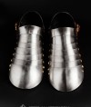 In options, you may choose another type and thickness of metal, color of belts, finish treatment and decoration for your medieval knight foot protection.