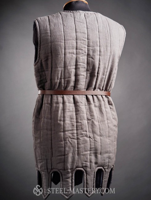Sleeveless gambesons with festoons on the bottom hem was popular among the crossbowmen and archers in the XII-XIII centuries.