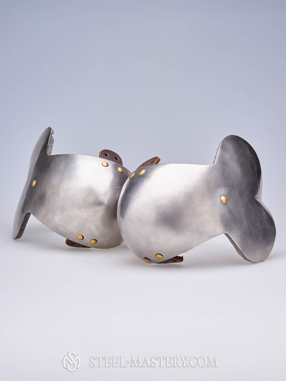 Steel elbow caps with brass rivets 1.5 mm (16 ga) additional shock absorbing layer 8 mm.