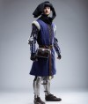 A sturdy leather belt cinches Roche's waist, serving both functional and ornamental purposes. The belt provides a means of securing his weapons and equipment, while also adding an additional layer to his ensemble's aesthetic.
