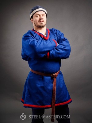 Undershirt (medieval chemise) is made of linen and decorated with hand-made embroidery around neckline and cuffs.