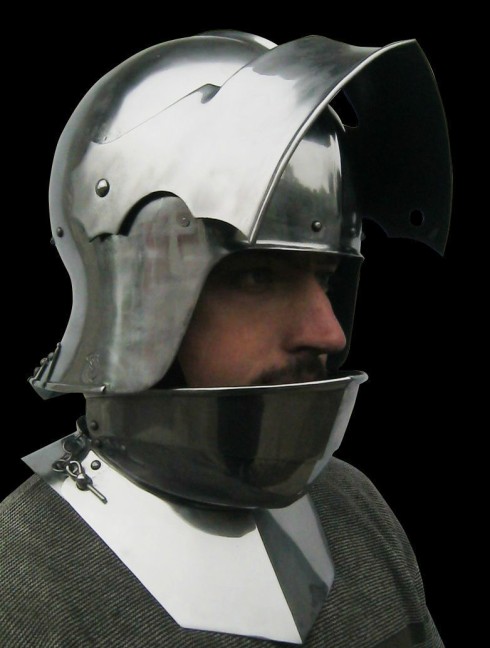 Visored sallet with bevor is a typical head armor, which was used by French knights in the XV century. Originally, sallet appeared in Italy in the Xv century. It replaced bascinet helm and gained great popularity among European warriors.
