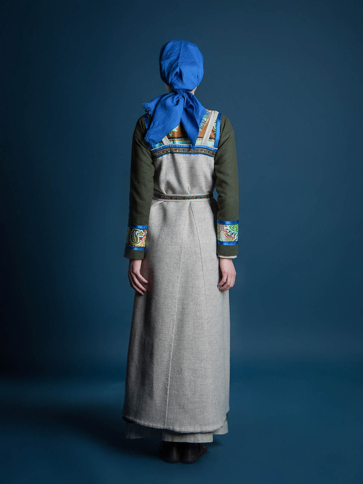 Headwear (shawl) is made of linen.