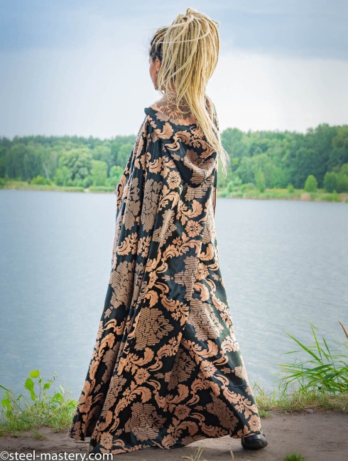 This awesome cloak model for a beautiful lady will be not just your outerwear but also a real highlight of your medieval or renaissance wardrobe. Just imagine yourself at this gorgeous jacquard hooded cloak as a picture of sophisticated grace. Gentle and chic, it will make even simplest dress a queen garment.