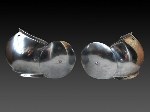 These kneecaps are simple in design, but comfortable in wearing and reliable in protection. Caps are fastened with leather belts and buckles, which holds armor firmly on the leg.