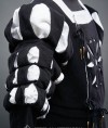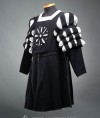 This particular coat features a striking combination of black wool and orange linen, with cuts on the chest, sleeves, and bottom edge. The black and orange color scheme of the coat is both eye-catching and symbolic. Black was a popular color for Landsknecht clothing, representing strength and authority. Orange, on the other hand, was often used as an accent color to represent wealth and status.
