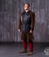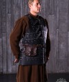 The front side of leather battle armor consists of two parts, the same as back one. There are belts with buckles for fastening from the front of the brigandine. Skirt has five sections and doesn't hinder movements during the fighting.