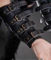 Well, these bracers and greaves are really cool, convincing example of functional leather armor. They may properly complete any fantasy-style costume of LARP armor with for example chic velvet medieval winter cloak and something else on the body…if you need it