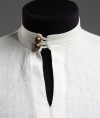 What truly sets this shirt apart are its graceful bishop sleeves. The sleeves are generously cut and gathered at the shoulders, creating an elegant billowing effect that cascades down to the wrist. Each sleeve is adorned with buttons along the edge, enhancing the exquisite design and allowing for a customizable fit and feel.