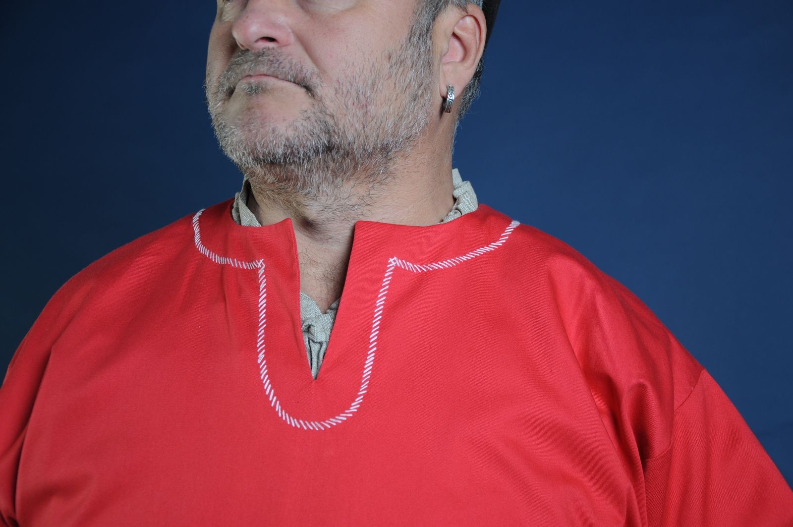 Medieval shirt has hand-made embroidery on the neck.