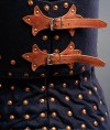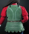 Back part of armour is not a single piece. Brigandine has leather belts with buckles on the back (less frequently – on the sides). Showpiece from Munich museum has thick velvet as outer fabric. Besides, similar armour could be covered with broadcloth, thick canvas, wool or crafted leather.