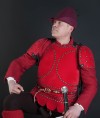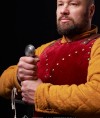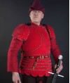 Various fastenings and types of decoration are available for order. We can make an embroidery of your heraldic emblem on the brigandine, or decorate the bottom edge with fancy festoons. Brigandine or whole-hammered spaulders provide with additional protection.