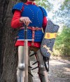 Due to slim fit of brigandine, its weight was disposed equally on the shoulders and pelvis joints. Together with movable connection of the thigh plates, this fact makes wearing of armour comfortable and provides with reliable protection of major organs. Another benefit of Munich brigandine is very easy putting on.