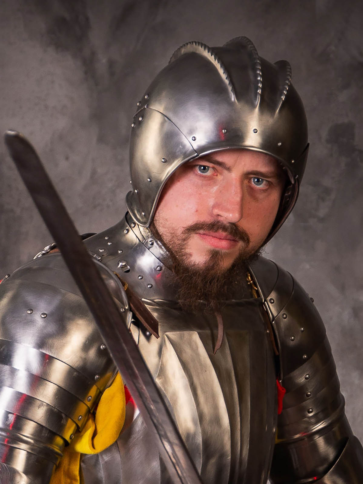Keep in mind that burgonet helmet is a part of LANDSKNECHT PLATE ARMOR, XVI CENTURY, so do not hesitate to complete your helmet with other armor parts ;)