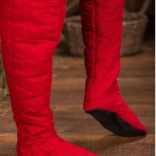 Classic medieval padded chausses are acceptable for any type of armour. They provide a good protection for warrior's legs, amortize hits well and do not limit mobility.