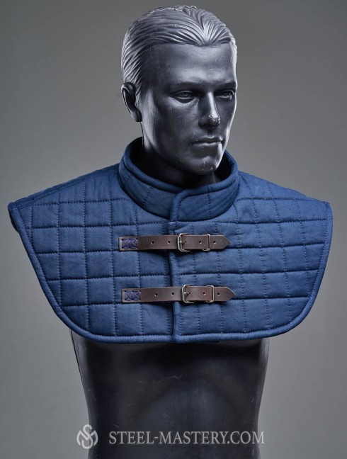 This padded pelerine is additional protection of neck and shoulders and goes good together medieval helmet, gambeson and brigandine. It shouldn't be ignored when choosing an armour. Such pelerine is not only historically corret, but is very functional.