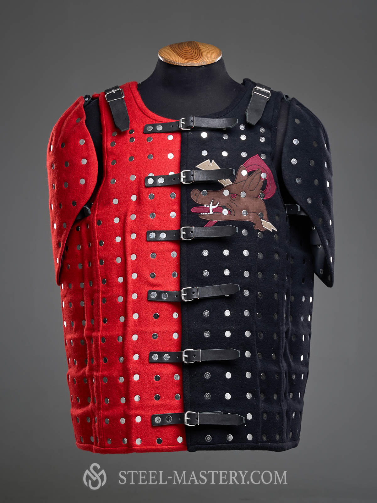 And note that all this coolest brigandine armor set is worn on ... drum roll ... long knight gambeson of the eleventh and fifteenth centuries by Steel Mastery. Gambeson is not included in the set, but you can add it as a separate piece!
