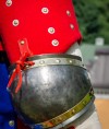 Leaf shoulders with elbow caps, and knee caps are the parts of SH-02 (Brigandine armor set XIIIth century), but no one can stop the noble knight from wearing them with another set or on their own.